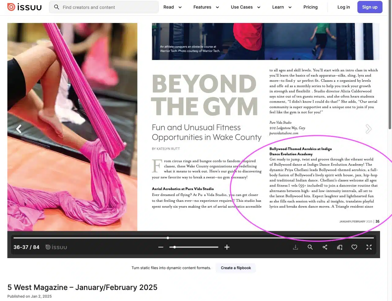 Honored to be mentioned again as one of the Top “Out-of-the-Box” Fitness Dance experiences in Wake county By none other than the PRESTIGIOUS local Lifestyle magazine 5 WEST! We are delighted for this recognition.