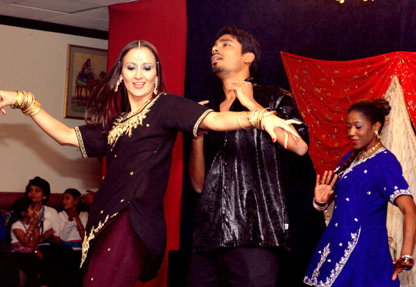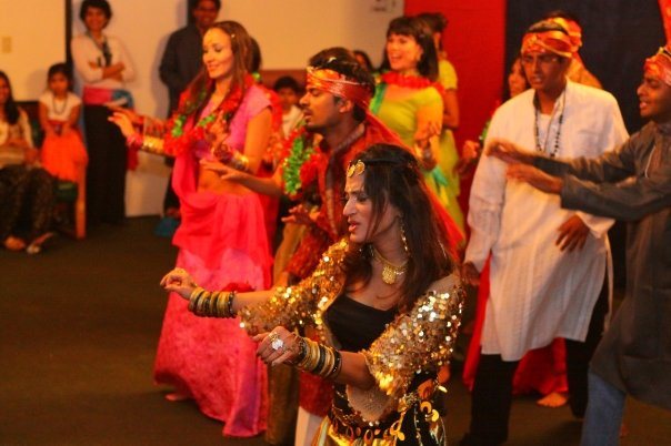 Diwali was truly amazing this year. The Indian Friends MeetUp Group did an excellent job arranging an incredible evening filled with awesome shows, performers and more. It was non stop action from start to finish… The place was packed. Tickets were sold out in advance.. with several families there in addition to IFMG members. The highlight of the evening was a BOLLYWOOD STYLE show choreographed by Priya Chellani of Indigo Dance. It was very impressive! Absolutely incredible! I couldnt get over the number of Dance scenes and well choreographed pieces. They must have been preparing since March to memorize all that! Wow! For me it was as if Bollywood had come to life right before my very eyes. All involved did a fantastic job. Members from Atlanta’s Bellydance Community also had major dance roles in the purely Bollywood style routines. There was very little “crossover.” Awesome job! The plot was a dance teacher tries to teach a 1st time dance student some moves. He’s terrible at it but soon learns. But that’s not all…as with every Bollywood Film there were twists and turns and all sorts of drama accompanied by fabulous dance scenes and costume changes. If anything it showed the capability of Priya Chellani who put this enormous act together. If you can get a hold of the videos then do. I’m putting together a montage soon and will post a link to it on Raqs Atlanta. Big thanks to the IFMG for being so welcoming…And mega zaghareets to Priya for putting the fine touch on the event ! It was incredible. *Priya’s picture is on our Raqs Atlanta page cover. More videos and albums from the show will post Friday.”-Andinha Atughone, RAQS ATLANTA Belly-dancing Group Event Co-ordinator & Dance Journalist.~
